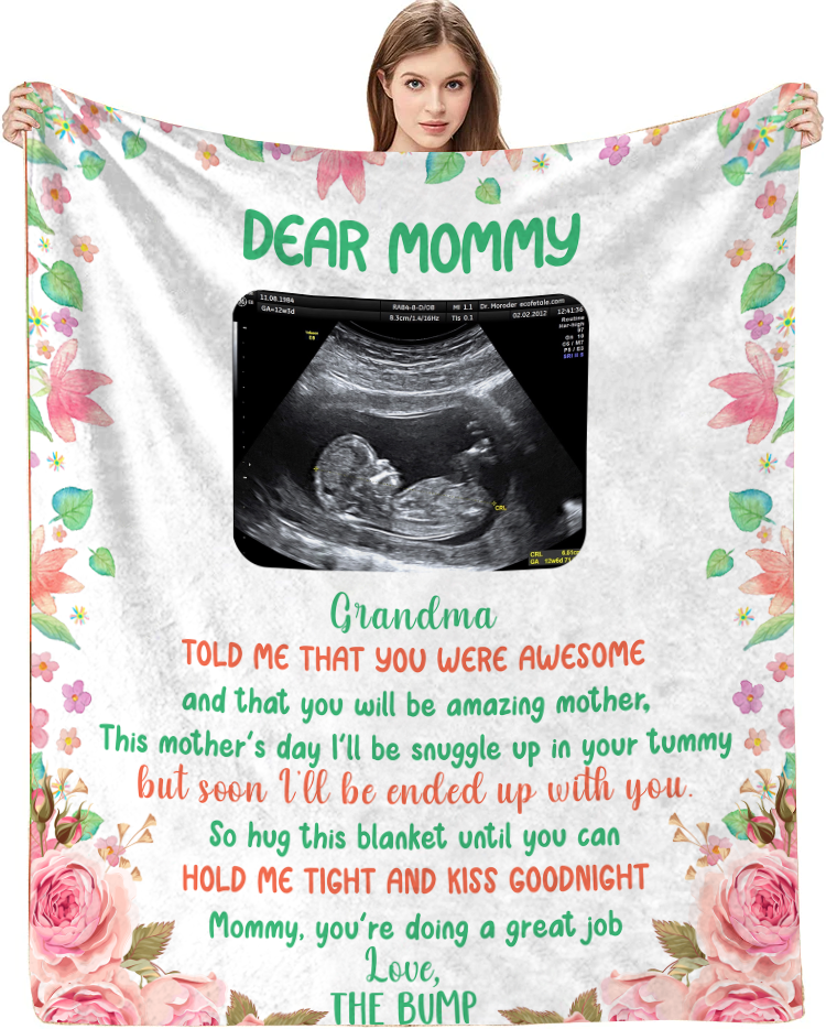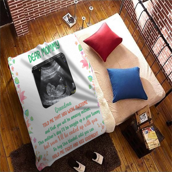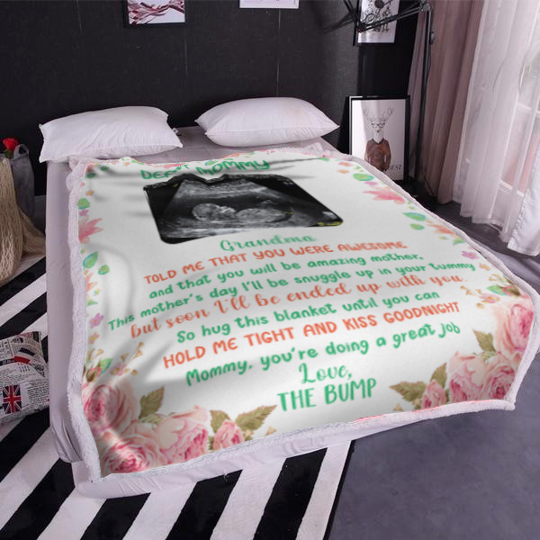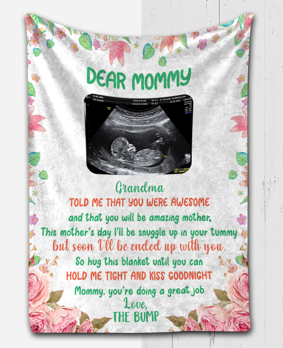 The Message Says: "Dear Mommy - Grandma told me that you were awesome and that you will be amazing mother. This mother's day I'll be snuggle up in your tummy but seen I'll be ended up with you. So hug this blanket until you can hold me tight and kiss goodnight mommy, you're doing a great job, Love, The Bump"