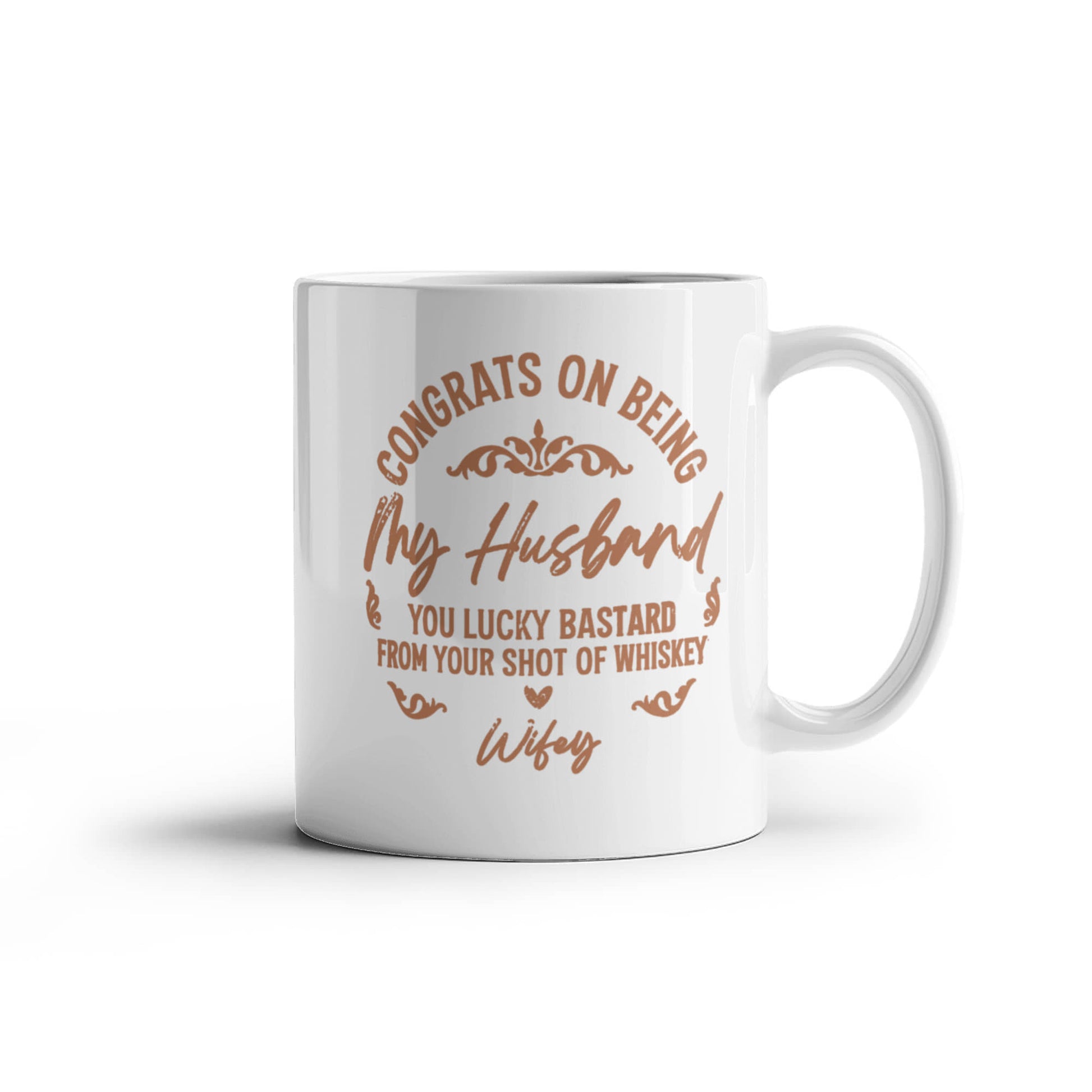 Message: "Congrats on being my husband you lucky bastard from your shot of whiskey. Wifey"